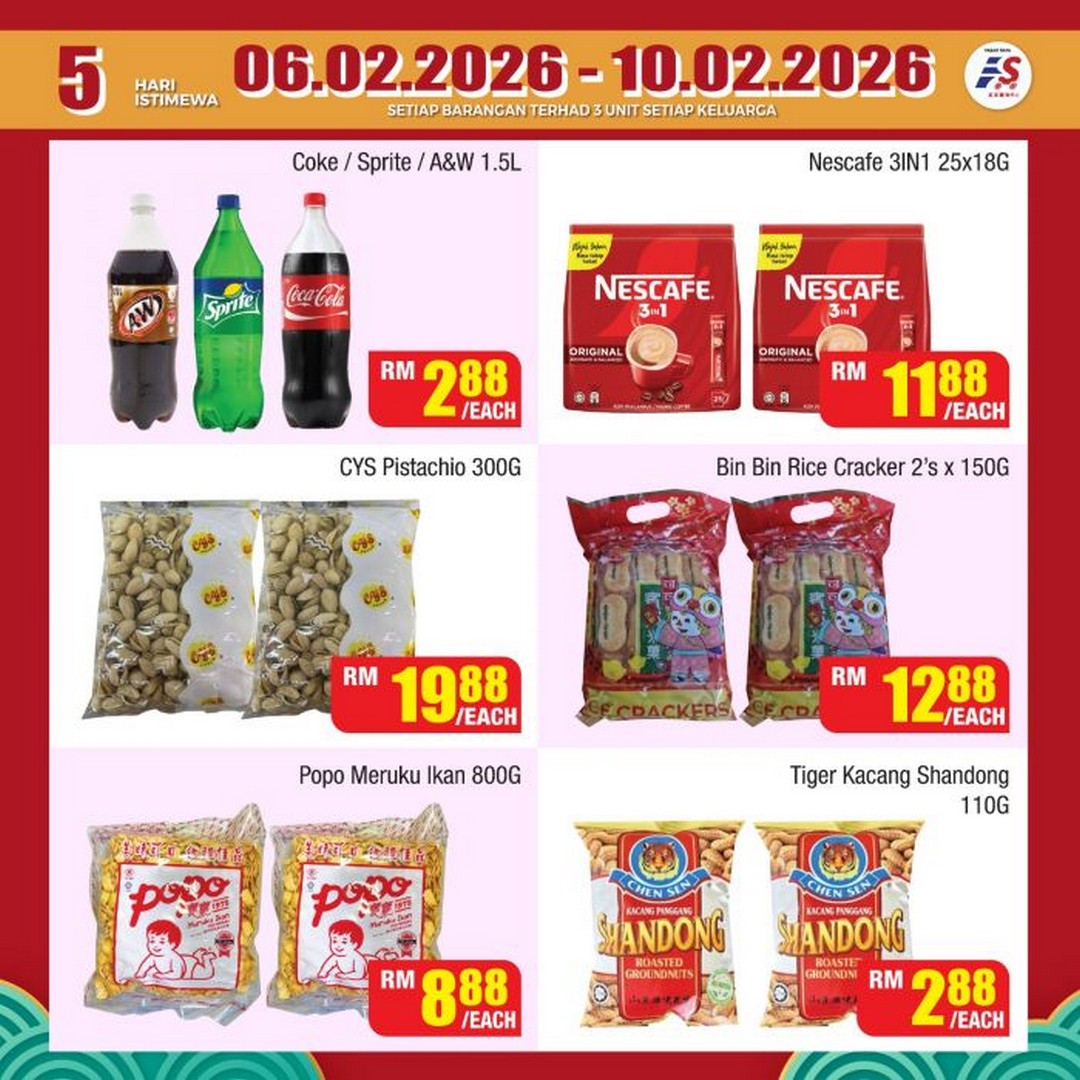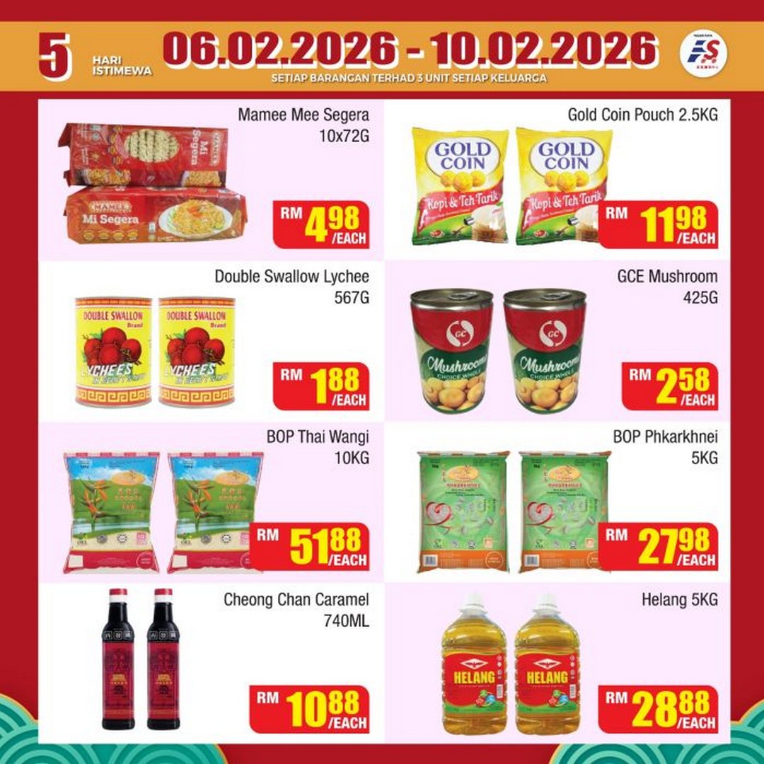 This Chinese New Year Super Sale is labelled as “5 Hari Istimewa” and runs strictly from 6 to 10 February 2026. Purchases are limited to three units per family per item, a thoughtful move to ensure fair access for all shoppers. The promotion is available at Family Store Melaka outlets, with operating hours from 10.00am to 10.00pm at the M Parade outlet, and 9.30am to 10.00pm at other outlets.