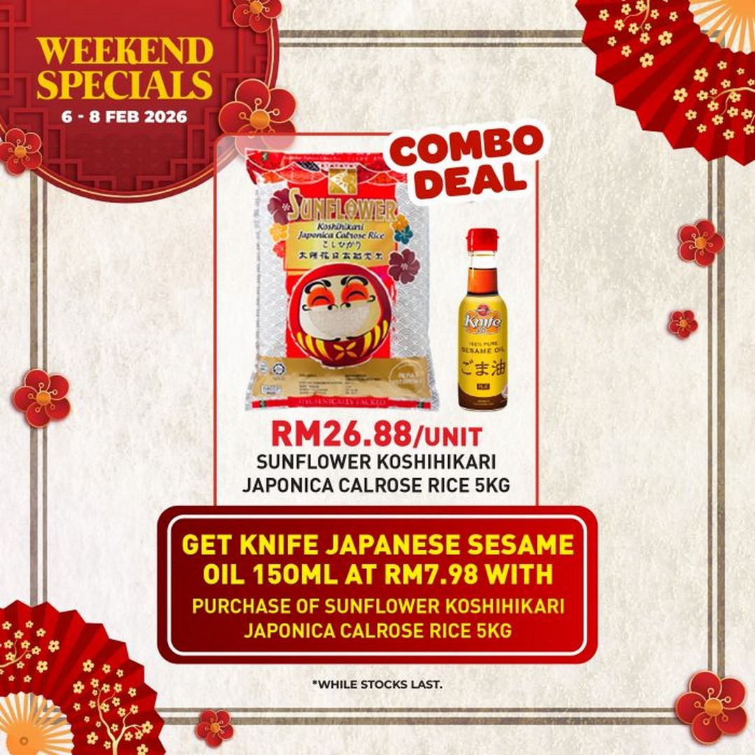 No Chinese New Year feast is complete without the perfect base, and rice plays a starring role in many festive dishes. Village Grocer is offering Sunflower Koshihikari Japonica Calrose Rice (5kg) at RM26.88 per unit. This high-quality rice is known for its slightly sticky texture and sweet aroma, ideal for preparing both savoury and celebratory dishes. The rice combo is even better with a PWP (Purchase With Purchase) deal: shoppers can purchase Knife Japanese Sesame Oil (150ml) at just RM7.98 with the purchase of Sunflower Koshihikari Rice. This thoughtful pairing ensures every dish tastes authentic, helping busy hosts bring restaurant-quality flavours to their table.