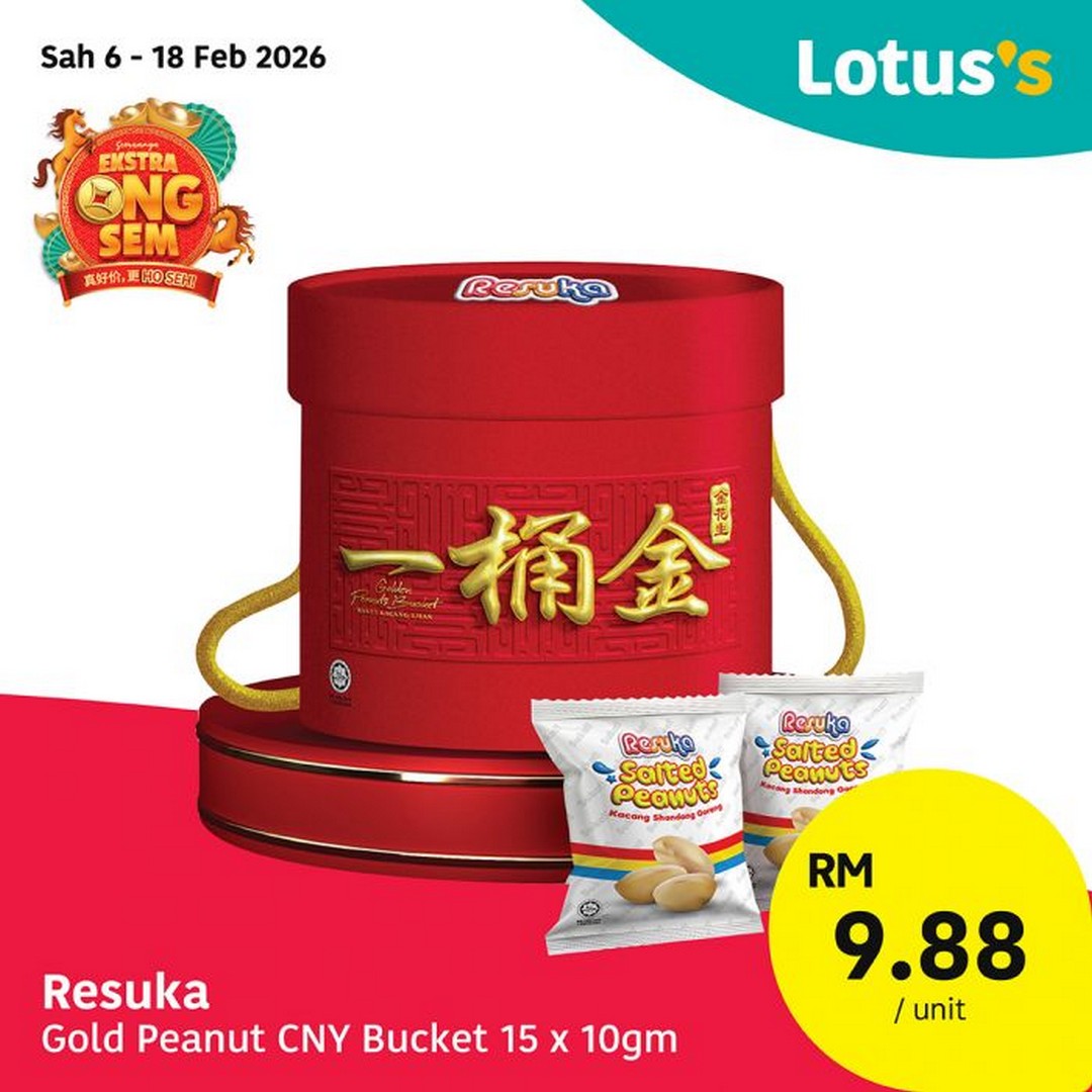 If chocolate treats are a must-have during your celebrations, Lotus’s offers Zess Wafer Rolls Chocolate (700g) at RM 12.38. For more savoury snack options, Resuka Muruku CNY Pack is available at RM 5.88, and the Resuka Gold Peanut CNY Bucket (15 x 10gm) is priced at RM 9.88. Nuts and chocolate make excellent gifting options, and these products are available until 18 February 2026, providing plenty of time for shoppers to plan their festive treats.