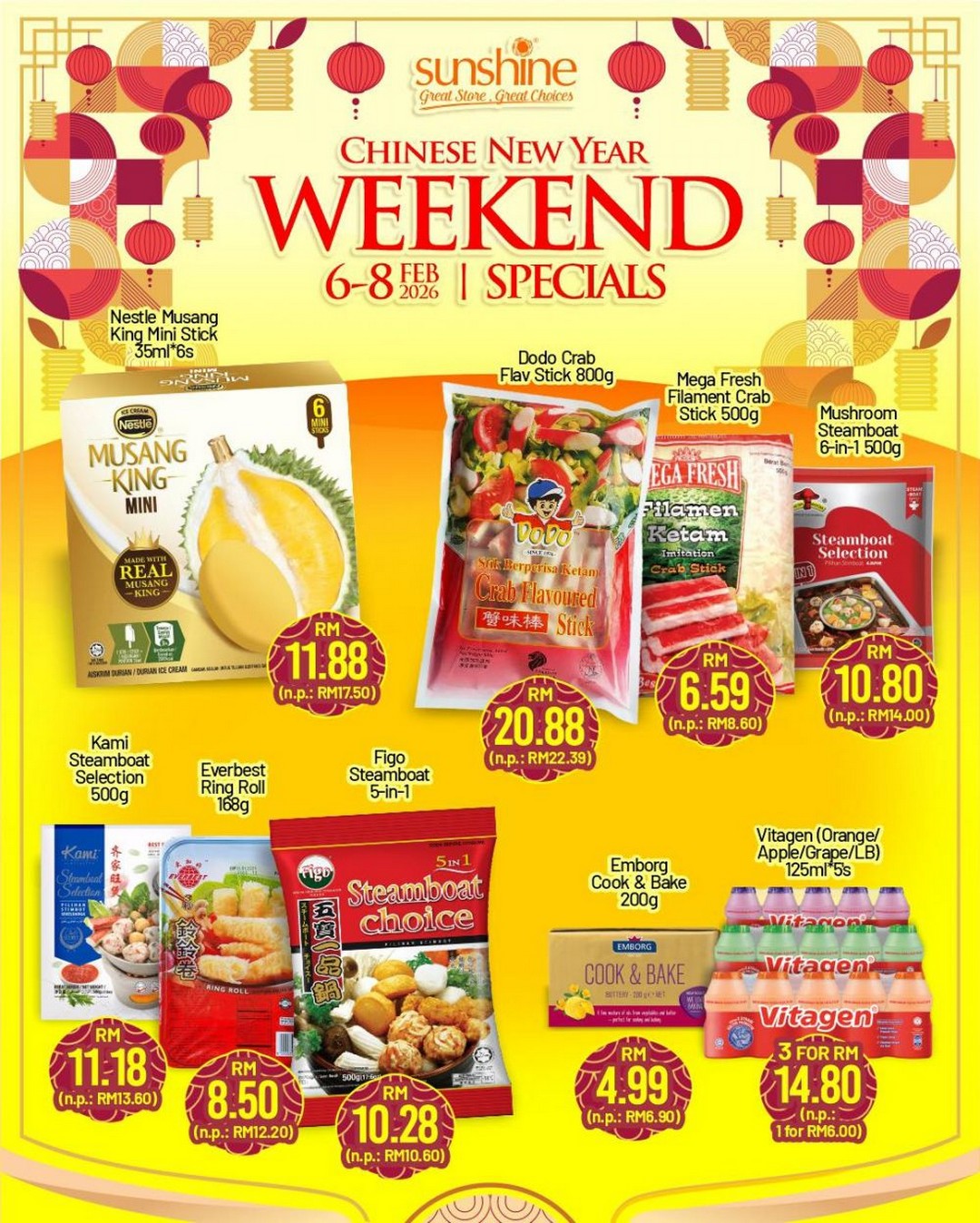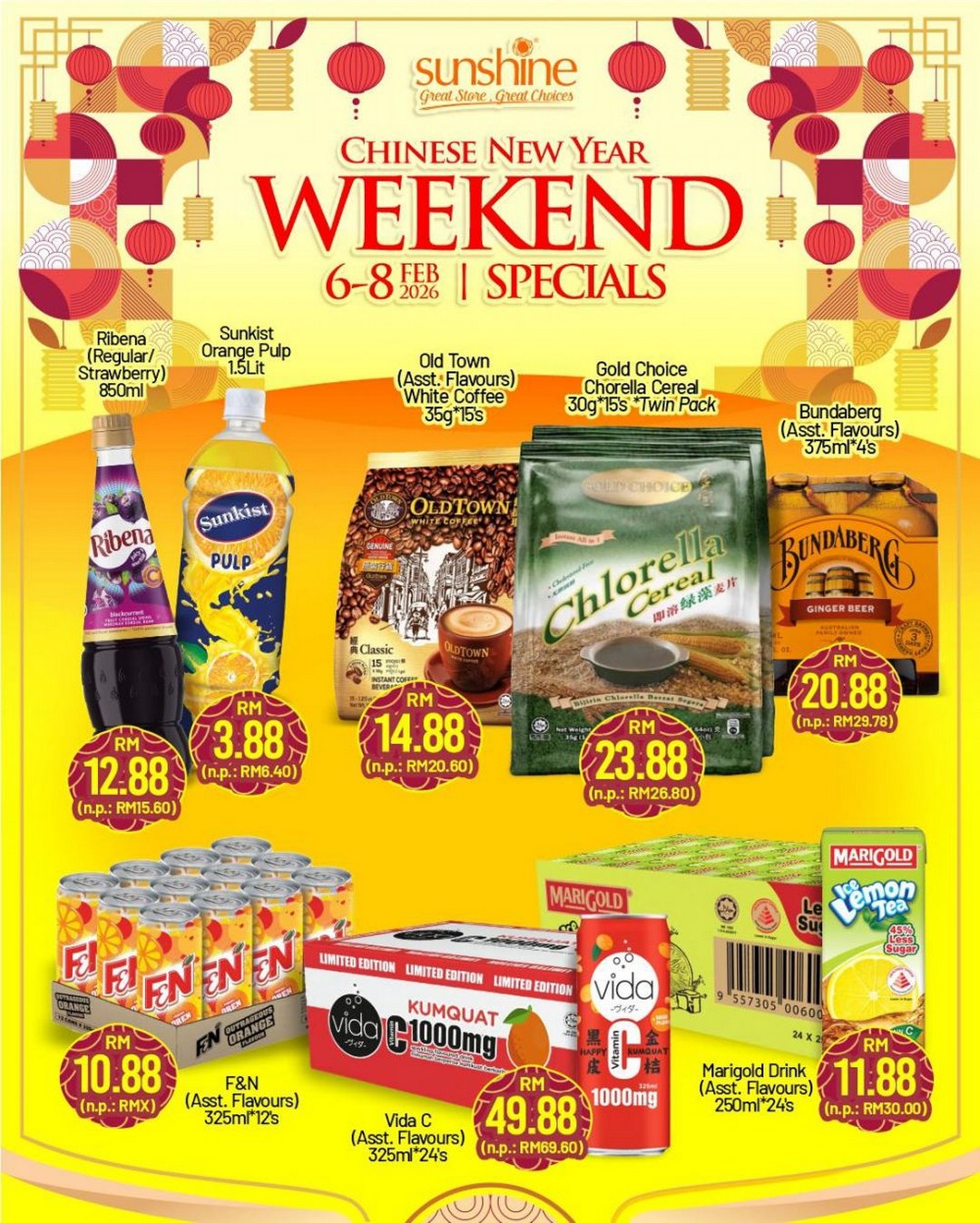 Don’t let this weekend pass by—take advantage of the Sunshine CNY deals, and bring home both prosperity and value this festive season!