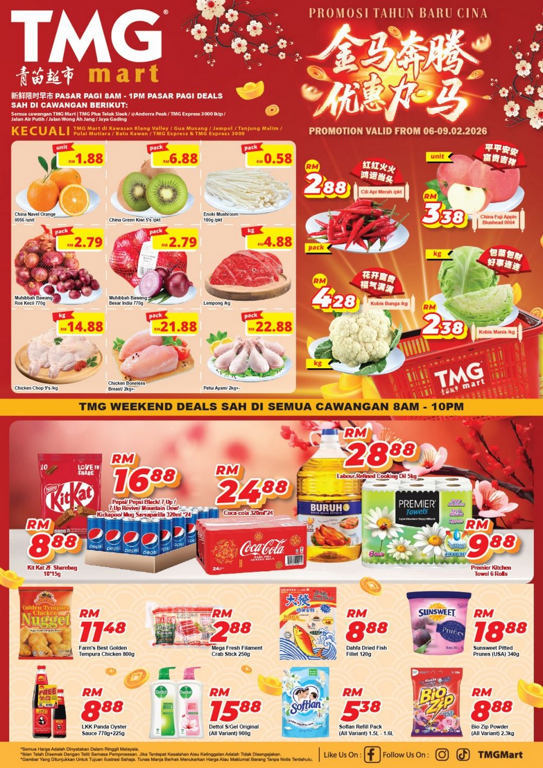 In summary, TMG Mart’s Chinese New Year Weekend Promotions from 6th to 9th February 2026 provide Malaysian shoppers with an excellent opportunity to stock up on fresh produce, essential groceries, beverages, and household items—all at prices that genuinely make a difference. With their wide selection, early-bird deals, and all-day offers, TMG Mart makes it simple and rewarding to prepare for the festivities. Families and individuals alike can enjoy the convenience of a one-stop shopping experience while taking advantage of the remarkable savings offered during this special weekend promotion.