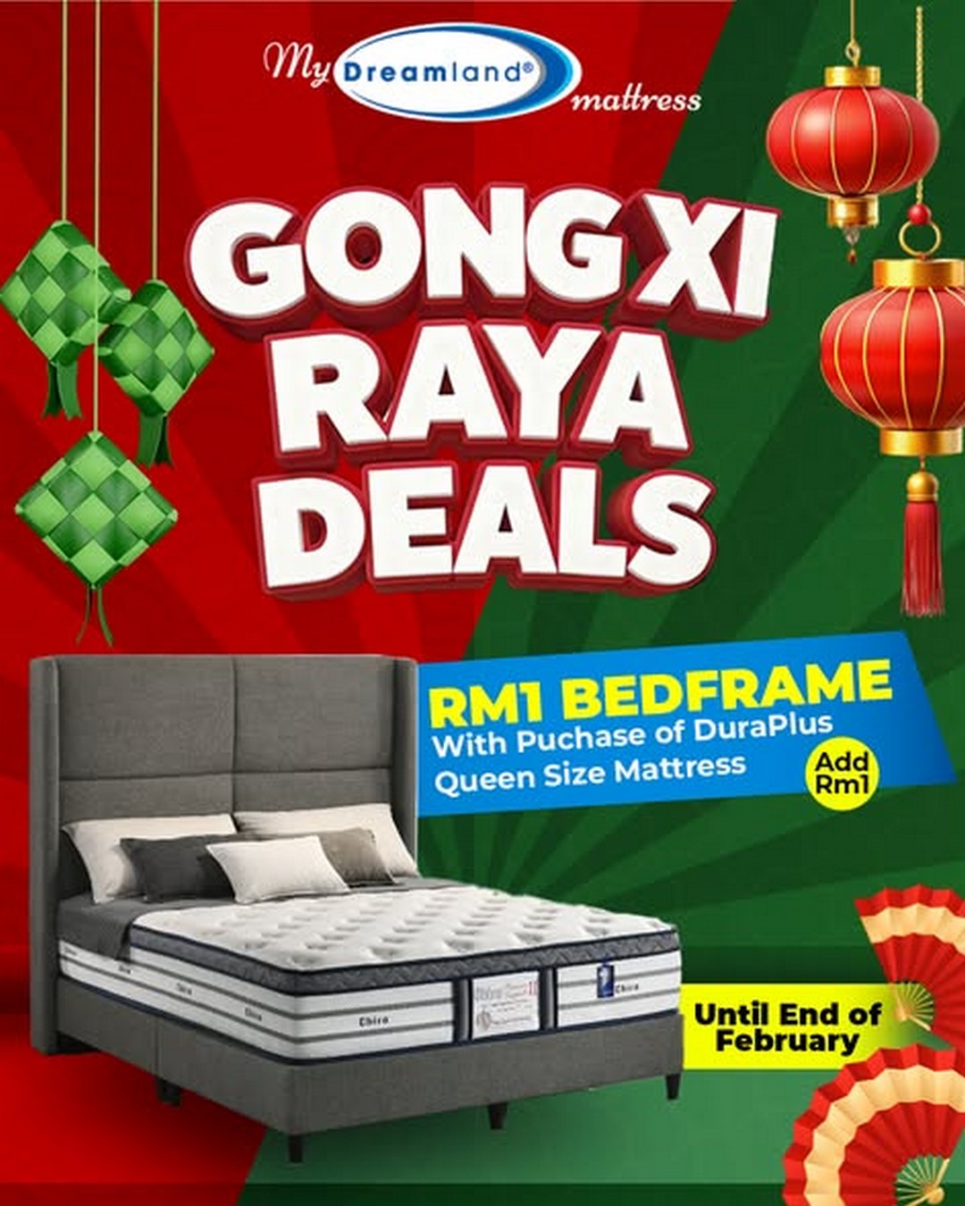 Dreamland Malaysia is currently running a limited-time promotion that feels refreshingly straightforward. Customers who purchase a DuraPlus Queen Size Mattress at RM1,989 can add just RM1 to receive a matching bedframe. That means a complete sleep set for RM1,990, a price point that is rarely seen for a queen-size mattress and bedframe combination from a well-established brand. This promotion is available at all MyDreamland Mattress outlets nationwide and runs now till 28 February 2026, making it ideal for both Chinese New Year and Raya home refresh plans.