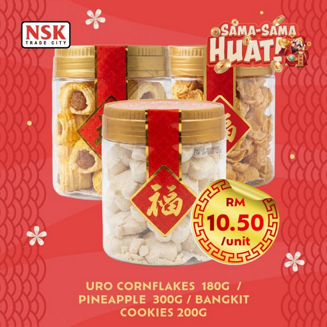 NSK has also included traditional Chinese New Year snacks like URO Cornflakes, Pineapple Tarts, and Bangkit Cookies (180g–300g) at RM10.50 per unit. These treats are staples for any CNY celebration and provide that nostalgic flavour that brings family gatherings together. With prices like this, shoppers can stock up on all the essentials without worrying about the cost.