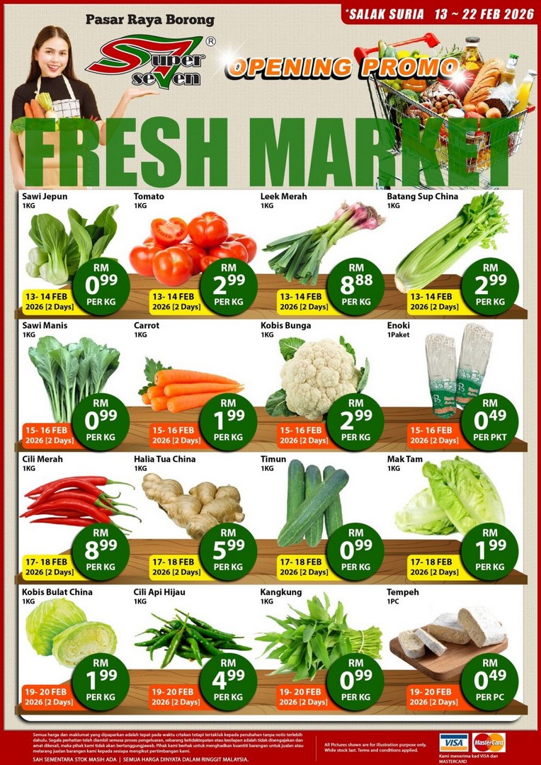 13 – 22 February 2026, 8:00 AM – 11:00 PM: Rotating Fresh Market Deals, Super Seven Salak Suria