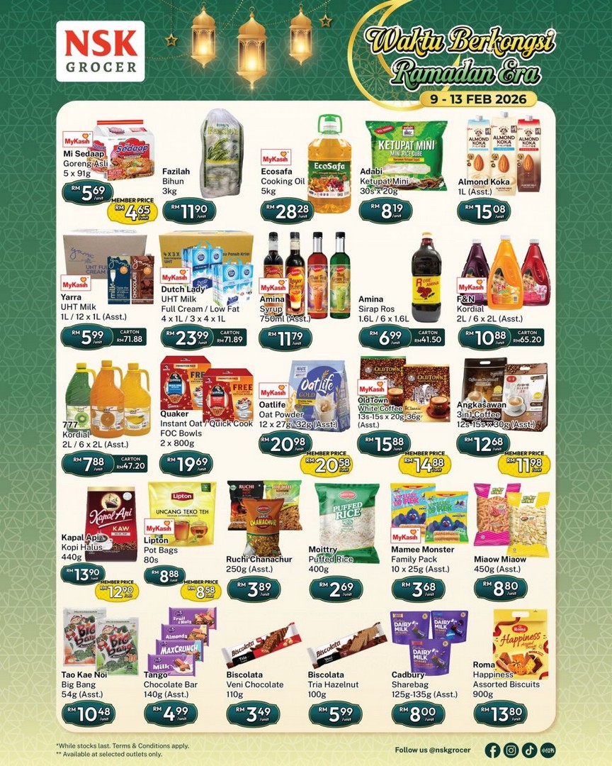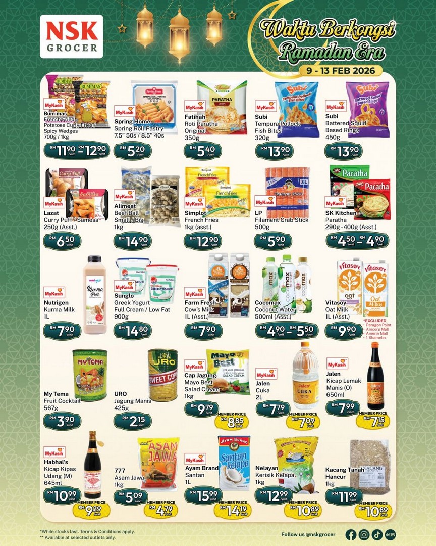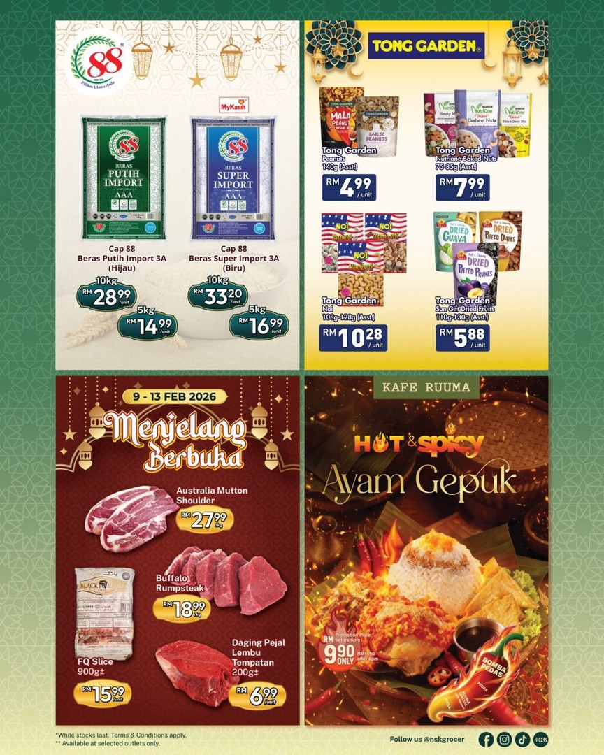 From 9 to 13 February 2026, NSK Grocer provides a range of daily essentials at discounted prices. Whether it’s fresh produce, frozen foods, or pantry staples, these deals make stocking up for the month of Ramadan more affordable.