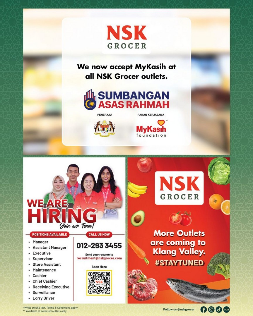 Additionally, all NSK Grocer outlets now accept MyKasih, allowing those on the programme to enjoy these promotions effortlessly.