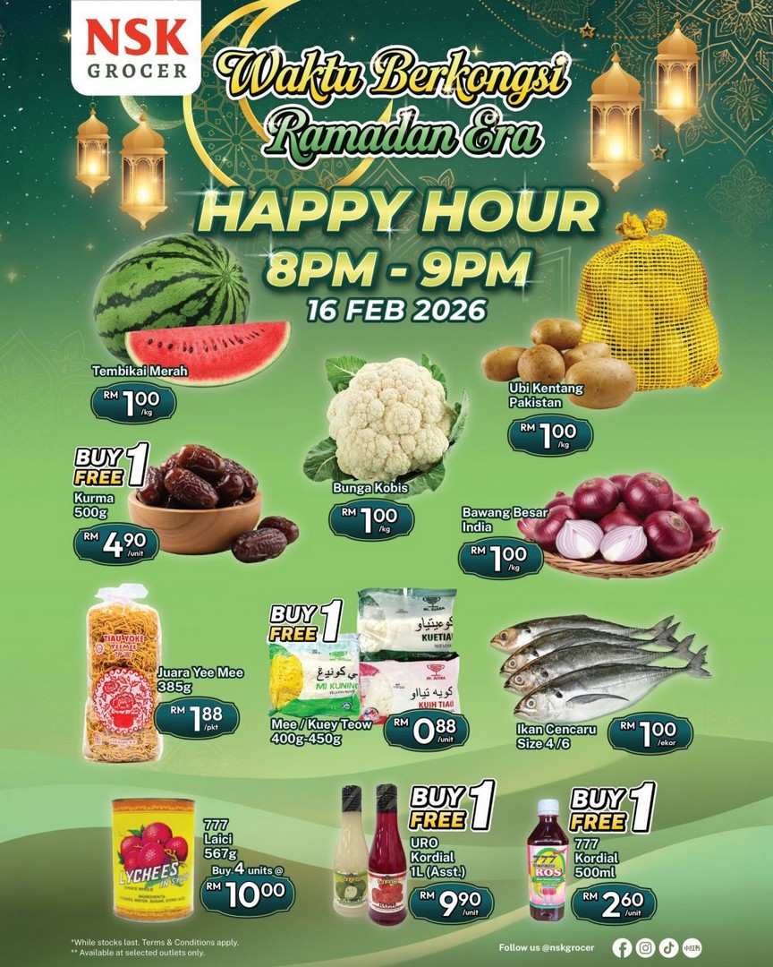 16 February 2026, 8PM – 9PM, NSK Grocer Outlets – RM1 Happy Hour Deals on Selected Items