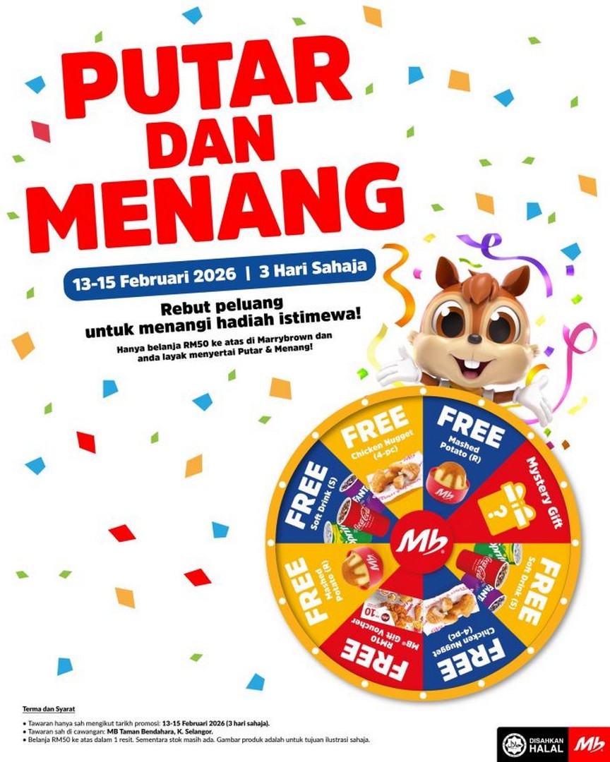 So mark your calendars and plan your visit carefully. Arrive early to be among the first 100 customers and guarantee your free 2-piece Ayam Goreng MB®. Budget for a spend of RM50 or more to spin the wheel and try your luck for additional treats. Don’t let this opportunity slip by—13th to 15th February 2026 at Marrybrown Taman Bendahara is shaping up to be a weekend to remember!
