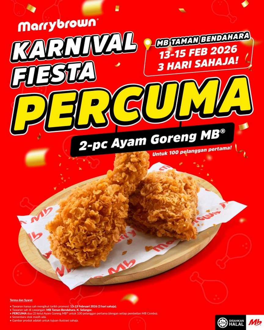 Get ready, food lovers and bargain hunters! Marrybrown is turning up the excitement this February with their Karnival Fiesta at Taman Bendahara, Kuala Selangor, promising three days full of tasty treats, fun activities, and amazing prizes. From 13th to 15th February 2026, Marrybrown fans can look forward to a weekend unlike any other—packed with free food, games, and giveaways. If you are around Kuala Selangor, this is an event not to be missed.