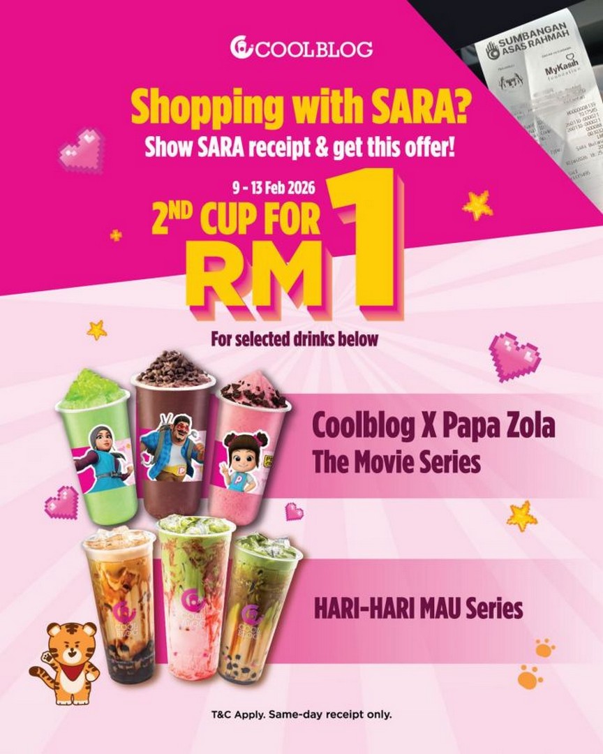 If you’re planning to make the most of your Sumbangan Asas Rahmah (SARA) aid this week, there’s a sweet bonus waiting for you beyond the supermarket aisles. Coolblog Malaysia has launched an enticing promotion specifically for SARA users that turns your grocery receipt into a delicious treat. From 9th to 13th February 2026, shoppers who show their SARA receipt at selected Coolblog outlets can enjoy their second cup for only RM1. It’s an excellent way to reward yourself for everyday shopping and try out some of Coolblog’s most popular beverages without stretching your budget.