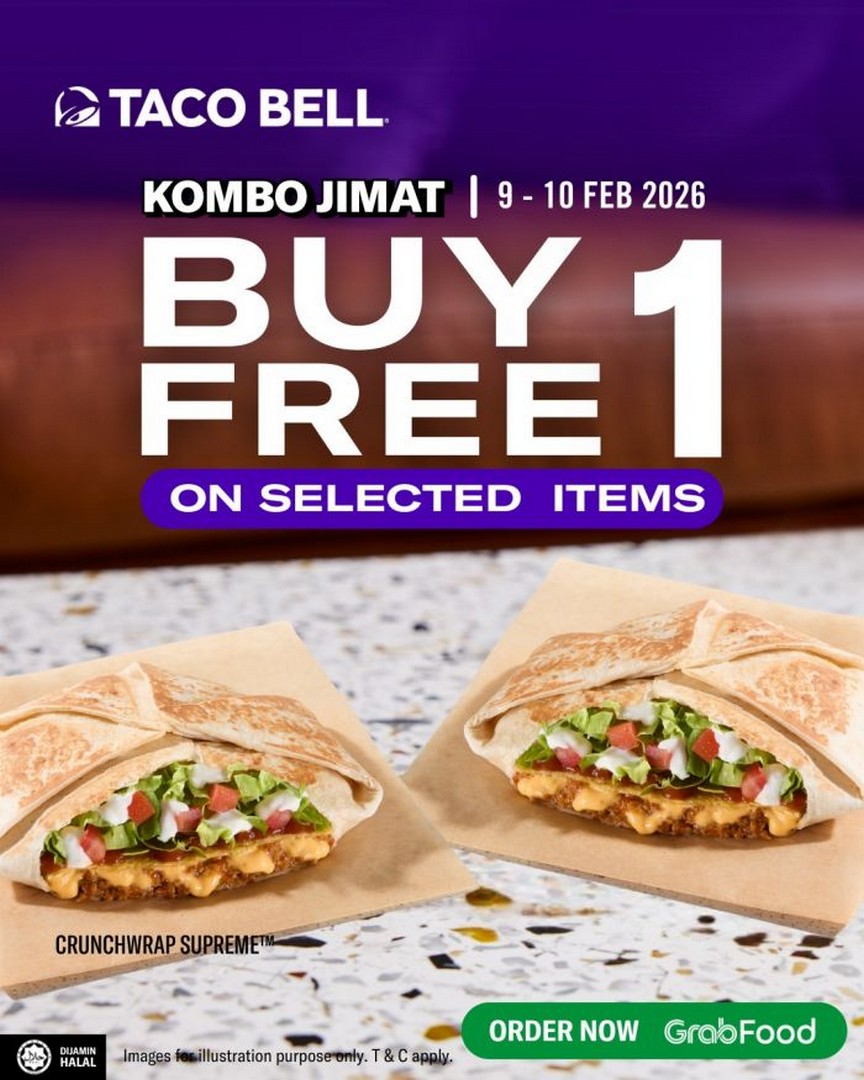 If you’re a fan of Mexican-inspired flavours and crave something hearty yet convenient, here’s some exciting news. Taco Bell Malaysia is serving up a fiesta exclusively for GrabFood users, and it’s a deal that food lovers simply cannot afford to miss. For a very limited period, from 9th to 10th February 2026, Taco Bell is rolling out a Kombo Jimat promotion that allows you to enjoy a Buy 1 Free 1 offer on selected items. That means double the taste, double the satisfaction, but only for the price of one.