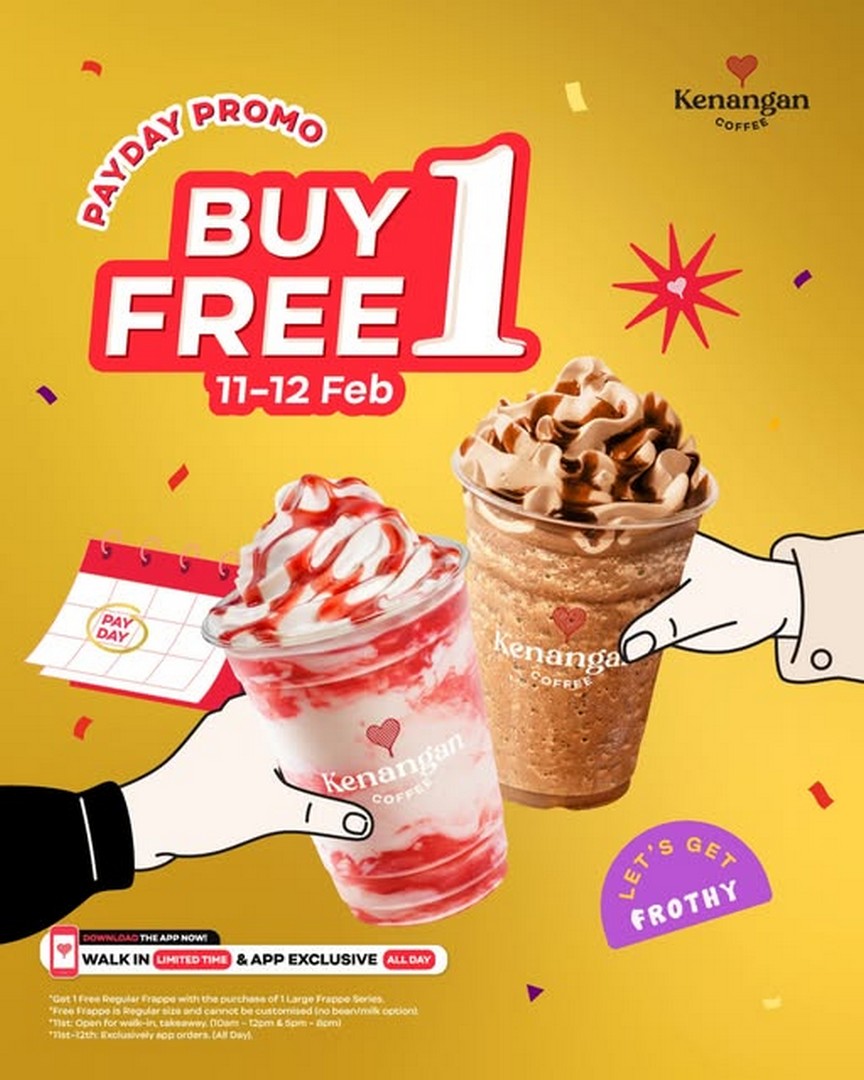 Kenangan Coffee Malaysia is running a Buy 1 Free 1 Frappe promotion for two days only, from 11–12 February 2026. It is short, sweet and very easy to understand. Purchase one Large Frappe and receive one Regular Frappe free. That means two cups of icy, creamy indulgence for the price of one large drink.