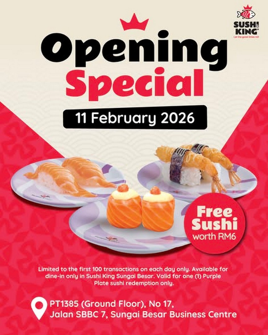 Grand openings come and go, but those that combine freebies with future savings deserve attention. Sushi King’s Sungai Besar opening on 11 February 2026 is more than just another store launch. It is a chance for locals to enjoy complimentary sushi, secure a RM10 voucher and welcome a popular dining brand into their neighbourhood.