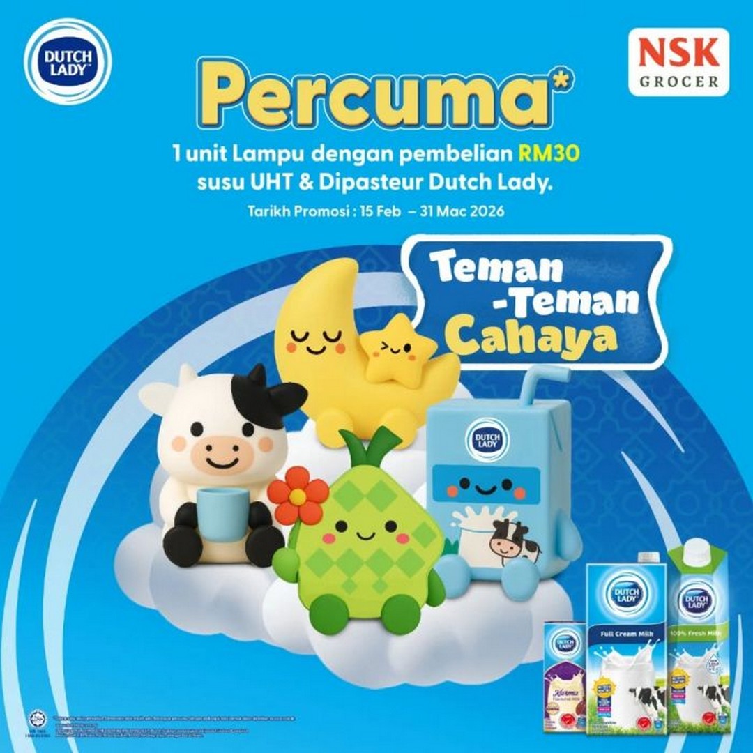 Don’t miss out on this rare opportunity to add a warm glow to your home while enjoying products that your family already loves. Head over to NSK Grocer from 15 February to 31 March 2026, stock up on Dutch Lady milk, and start building your Teman-Teman Cahaya lamp collection today.