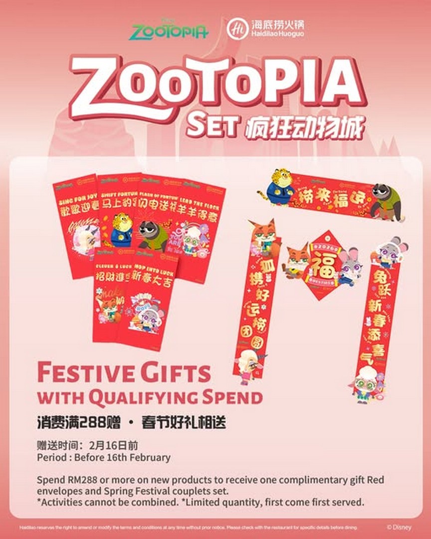 Moreover, Haidilao Malaysia continues to demonstrate its reputation for creating innovative promotions that tie in culture, dining, and entertainment seamlessly. This Zootopia New Year promotion perfectly embodies that vision. By combining beloved characters, traditional Chinese New Year blessings, and high-quality cuisine, Haidilao manages to offer an experience that goes far beyond what you might expect from a typical restaurant promotion. It’s festive, it’s fun, and it’s an occasion worth marking in your calendar.