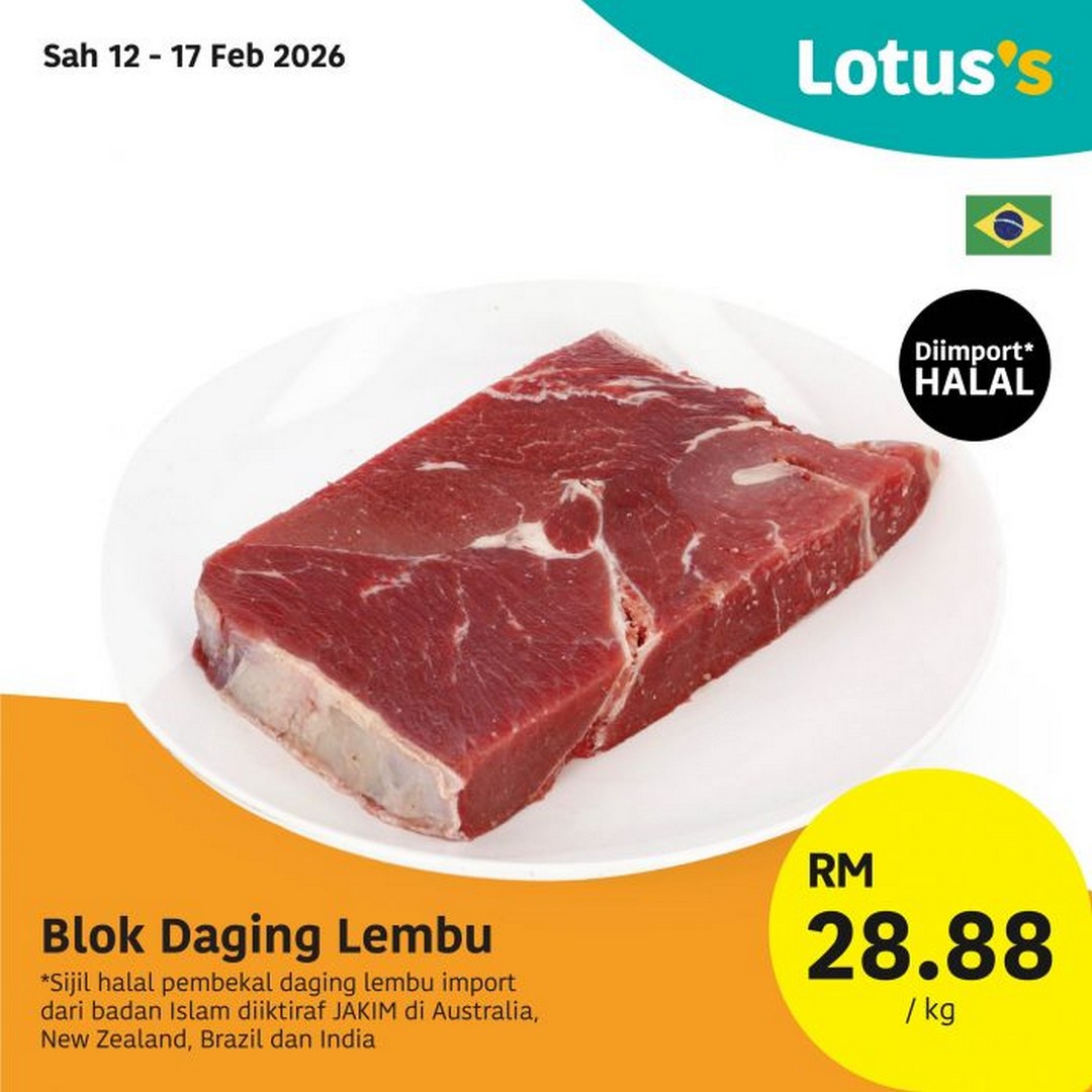 A well-stocked pantry is essential, but fresh ingredients bring meals to life. Lotus’s is offering select proteins at unbeatable prices, perfect for families wanting nutritious and delicious meals at home. The Blok Daging Lembu (Imported Halal) is priced at RM28.88 per kg, sourced from trusted suppliers in Australia, New Zealand, Brazil, and India. This makes it convenient for home cooks looking for quality beef without overpaying.