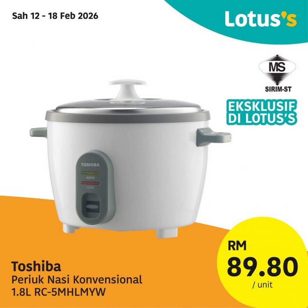 Toshiba Periuk Nasi Konvensional 1.8L & Munchy’s Biskut Oat Krunch Aneka: Now till 18 February 2026