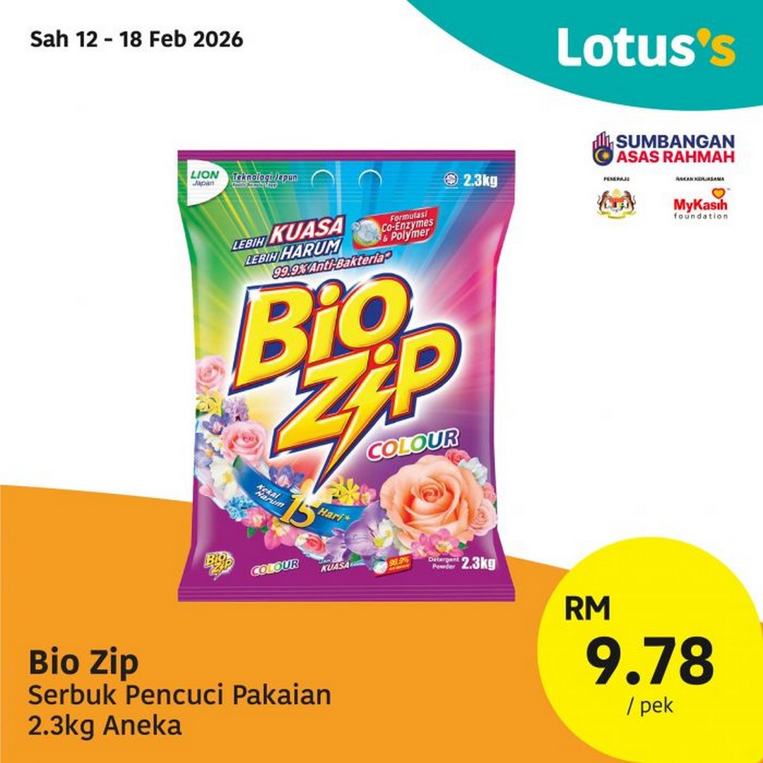 Bio Zip Serbuk Pencuci Pakaian Aneka & Softlan Pek Isian Semula Cecair Pelembut Fabrik: 12-18 February 2026