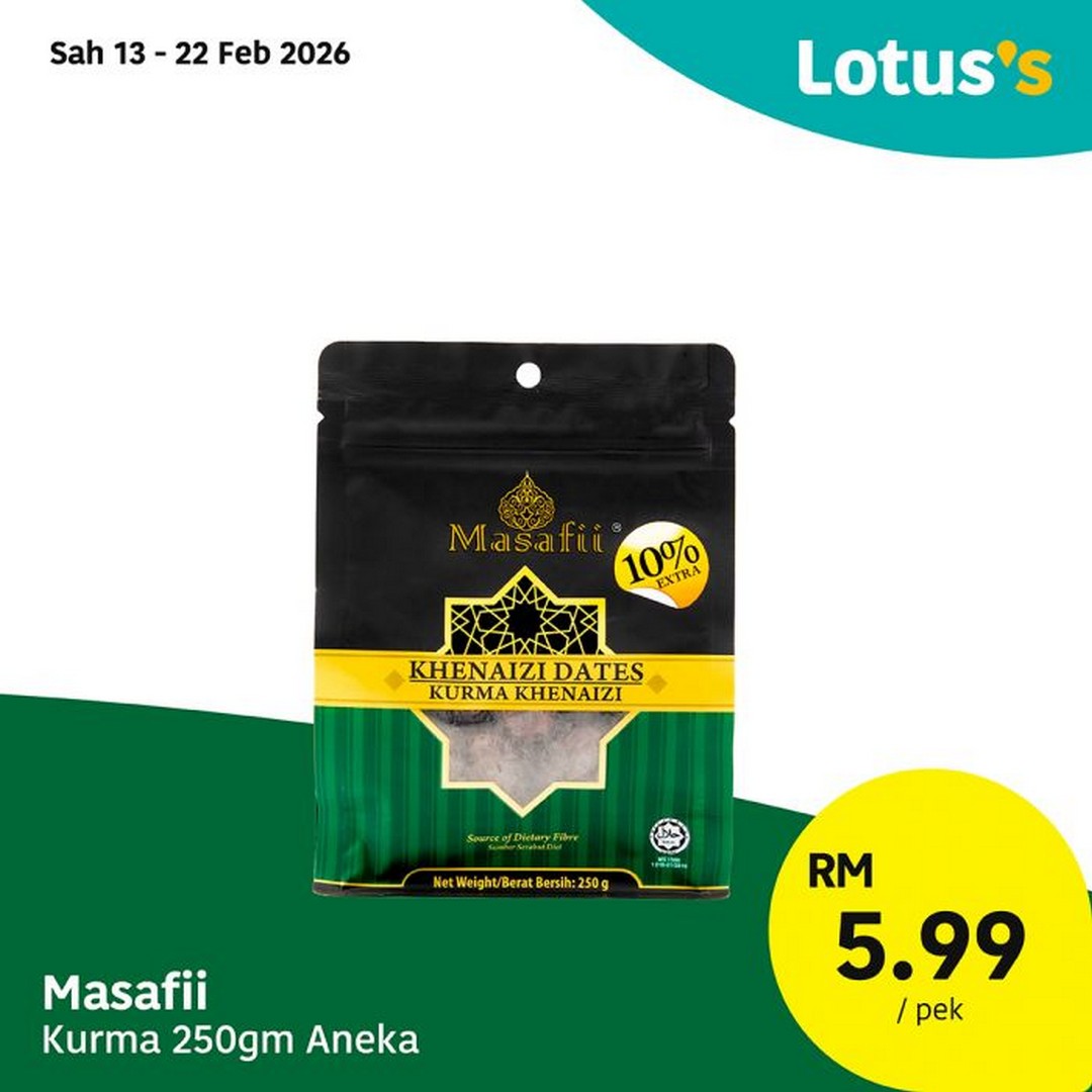 One important aspect to note is that the promotion features different end dates depending on the product category. For example, First Pride Nuget Ayam and Kawan Roti Paratha are valid until 16 February 2026. Donut Beraneka runs until 17 February 2026. Date Crown Kurma, Lotus’s Sardin and Karta Air Kelapa are valid until 18 February 2026. Yusuf Taiyoob Kurma and Masafii Kurma are available until 22 February 2026. Wow Pasta Segera and Lotus’s Ayam Frankfurter run until 25 February 2026.