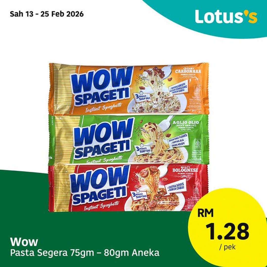 For younger family members or those who want something extremely simple, Wow Pasta Segera (75gm–80gm Aneka) is priced at RM1.28 per pack. It is budget-friendly and convenient, making it suitable for sahur or even a light iftar meal.