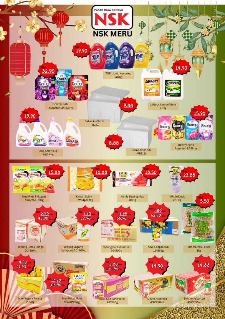 It’s not often that a promotion covers both Chinese New Year and Ramadhan, making this an ideal time for shoppers to tick off their grocery lists and household needs all in one go. NSK Meru’s promotion is packed with everything from staple foods and cooking essentials to fresh vegetables, poultry, snacks, beverages, and household cleaning products. These deals are carefully curated to ensure value for money, quality products, and convenience for shoppers preparing for both festive seasons.