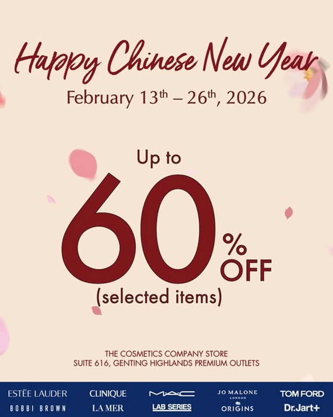 For anyone who loves high-quality beauty products at unbeatable prices, The Cosmetics Company Store is rolling out an exciting special sale that is impossible to miss. From 13 to 26 February 2026, shoppers can enjoy up to 60% off on a wide range of selected cosmetics, skincare, and beauty essentials at their outlet in Genting Highlands Premium Outlets.
