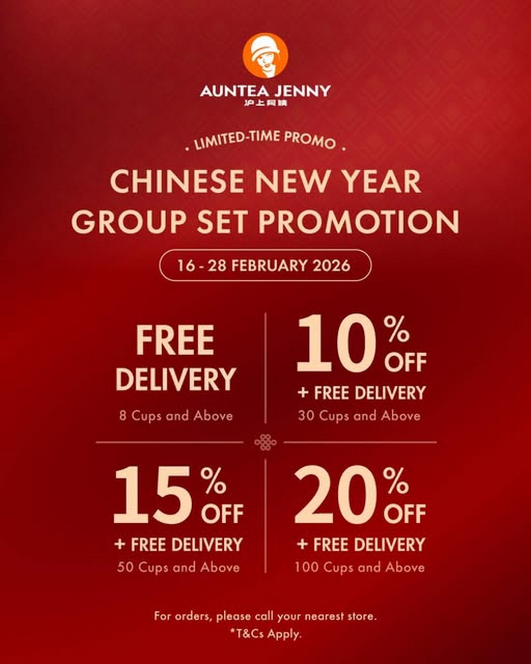 In summary, the Auntea Jenny Malaysia Chinese New Year Group Set Promotion is a win-win for anyone looking to celebrate the festive season with friends, family, or colleagues. With discounts of up to 20%, free delivery on orders of 8 cups or more, and the ability to scale orders according to the size of the gathering, this promotion delivers both convenience and value. Beyond the monetary benefits, it also encourages shared experiences, providing a simple yet effective way to bring people together and celebrate the season with high-quality beverages.