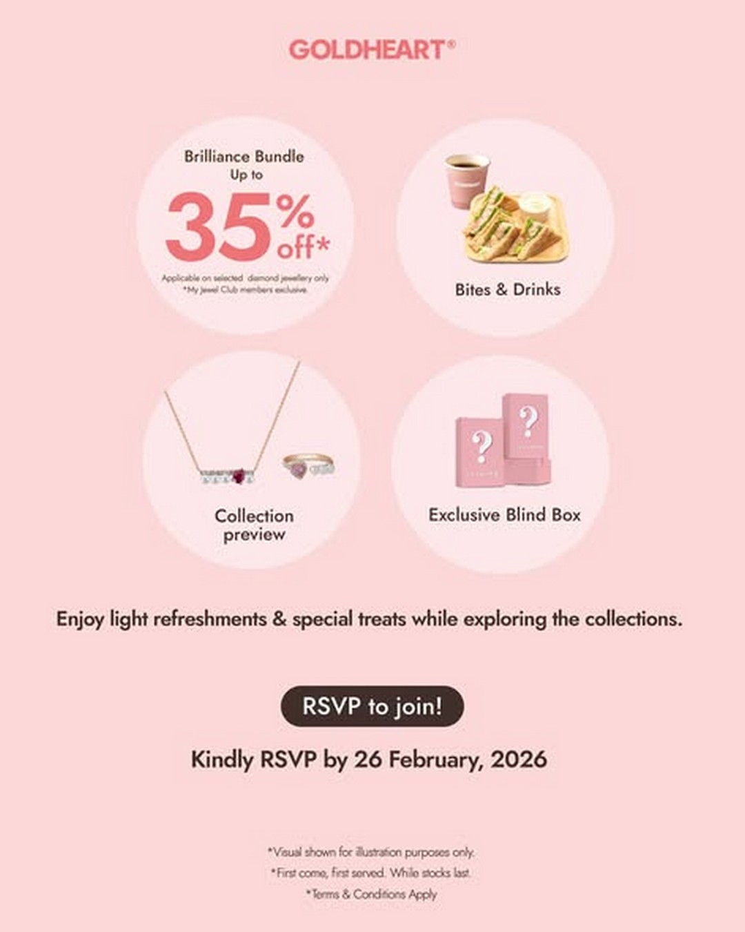 Don’t miss out on this chance to shine. From 28 February to 1 March 2026, GOLDHEART Mid Valley Megamall is the place to be for those who want to combine luxury shopping with celebration, exclusivity, and fun. Take the opportunity to RSVP, explore the new collection, and make the most of the incredible offers available during this special weekend.