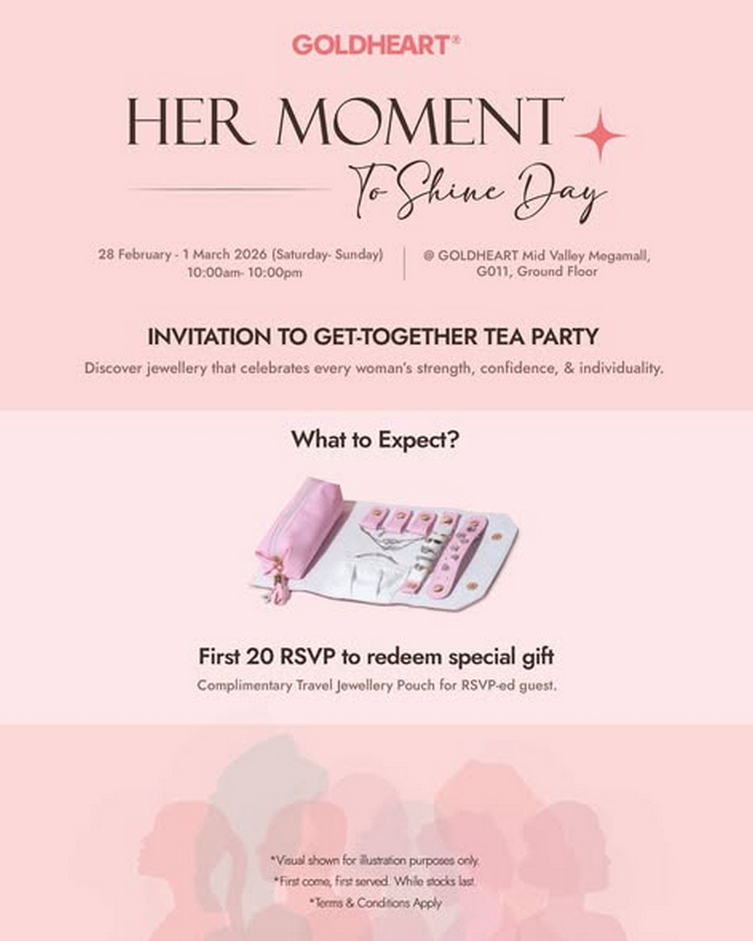 Mark your calendars, ladies and jewellery enthusiasts, because GOLDHEART Malaysia is rolling out a truly special celebration in honour of International Women’s Day! From 28 February to 1 March 2026, GOLDHEART at Mid Valley Megamall is hosting an exclusive “Her Moment To Shine Day,” offering more than just a chance to admire sparkling jewellery—they’re inviting guests to immerse themselves in a chic tea party experience, preview the latest collection, and enjoy a suite of exciting promotions designed to make this weekend unforgettable.