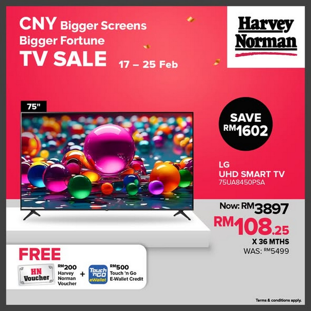 In conclusion, Harvey Norman Malaysia’s Chinese New Year promotion from 17th to 25th February 2026 is an exceptional opportunity for shoppers to enjoy high-quality TVs, substantial free gifts, and a festive shopping experience that combines luxury with practicality. Whether for family entertainment, a home theatre upgrade, or simply indulging in a new gadget, this promotion offers everything a savvy shopper could hope for during the festive season. Don’t miss out on this chance to celebrate Chinese New Year in style while making a smart and value-packed investment for the home.