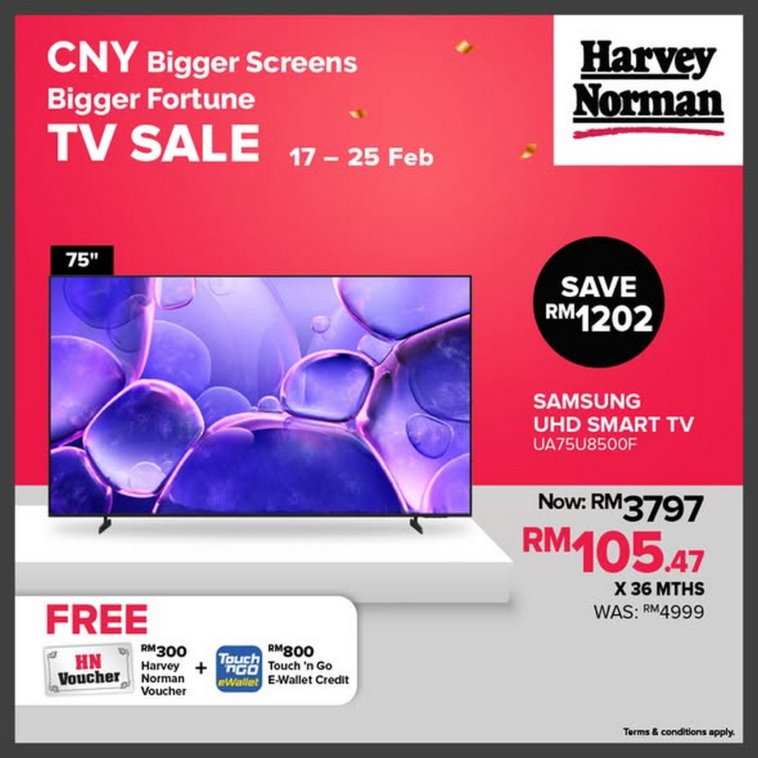 Harvey Norman has long been recognised for offering quality electronics and home appliances, and this promotion proves why they continue to be a top choice for Malaysian shoppers. The selected TVs on promotion feature cutting-edge technology, impressive screen sizes, and exceptional picture quality that makes every viewing experience feel cinematic. Whether it’s for a sports match, a movie marathon, or streaming your favourite series, these TVs promise to deliver sharp, vibrant visuals, making your home the ultimate entertainment hub.