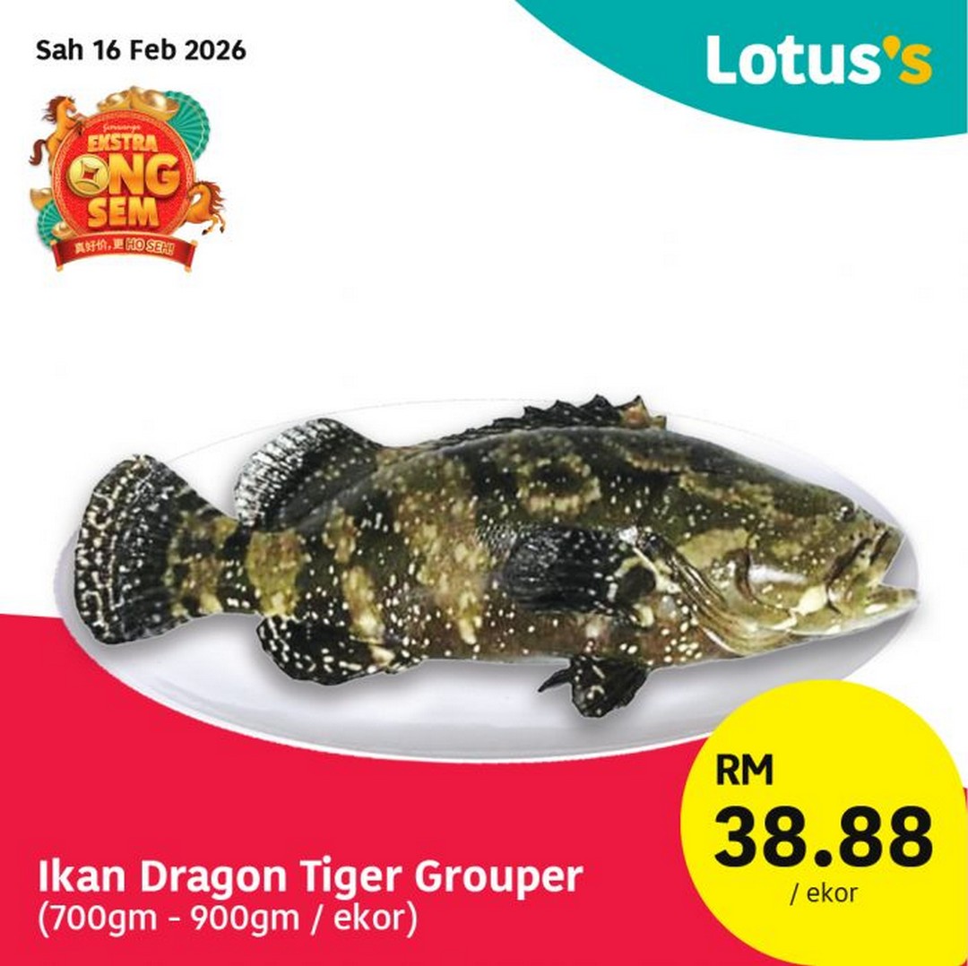 Venue: Lotus’s Malaysia Outlets – Fresh Dragon Tiger Grouper (700gm-900gm) at RM38.88 each -