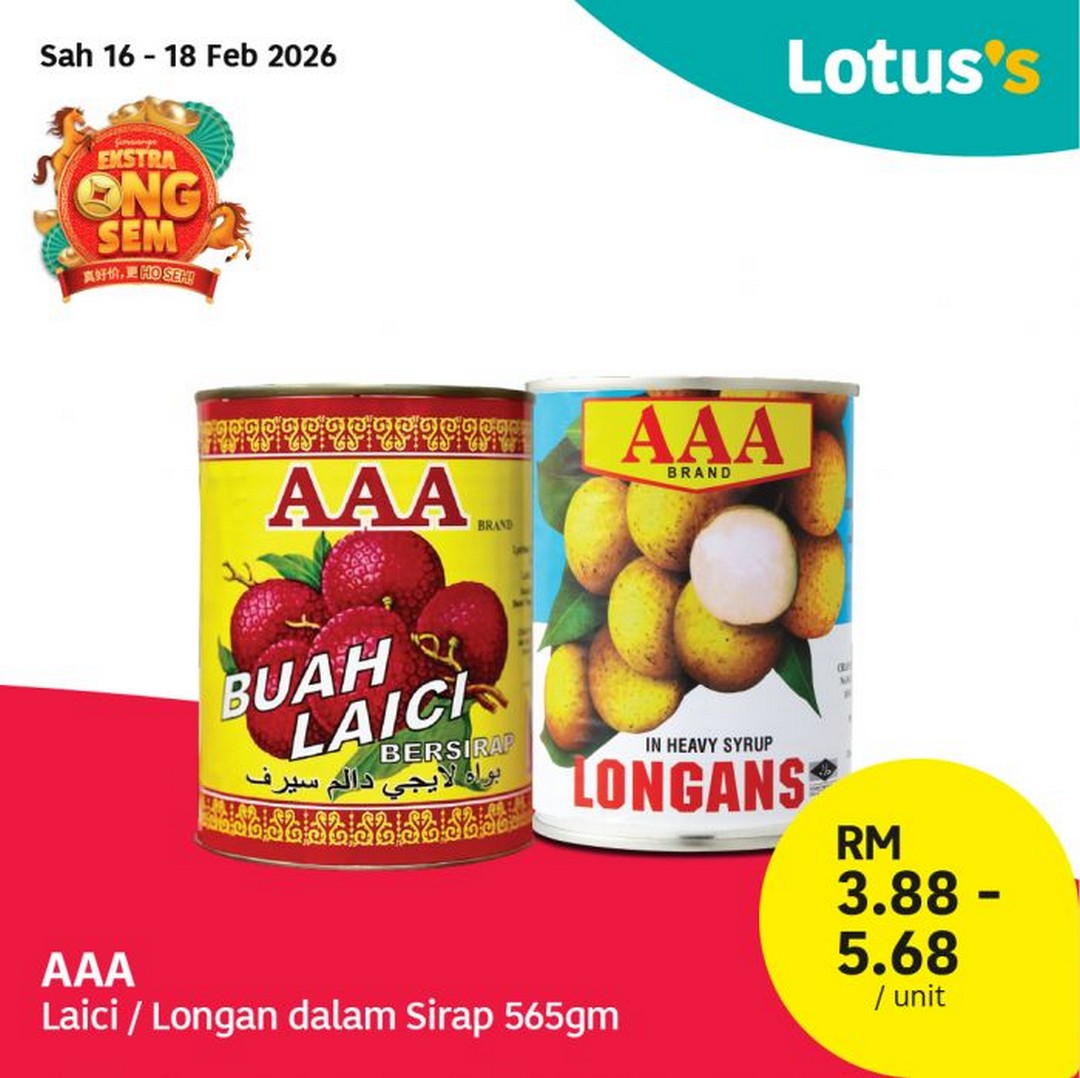 For sweet treats and long-lasting pantry items, the AAA canned fruits selection is also part of the promotion. Choose from lychee or longan in syrup, with 565gm cans priced between RM3.88 and RM5.68. These are perfect for family desserts or as an easy addition to celebratory meals, offering both convenience and value.
