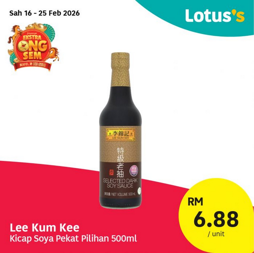 Lee Kum Kee Kicap Soya Pekat Pilihan (500ml) at RM6.88 per unit. This soy sauce is ideal for braising, marinades, or as a seasoning for festive dishes, ensuring the rich, savoury flavour that makes Chinese cuisine so special.
