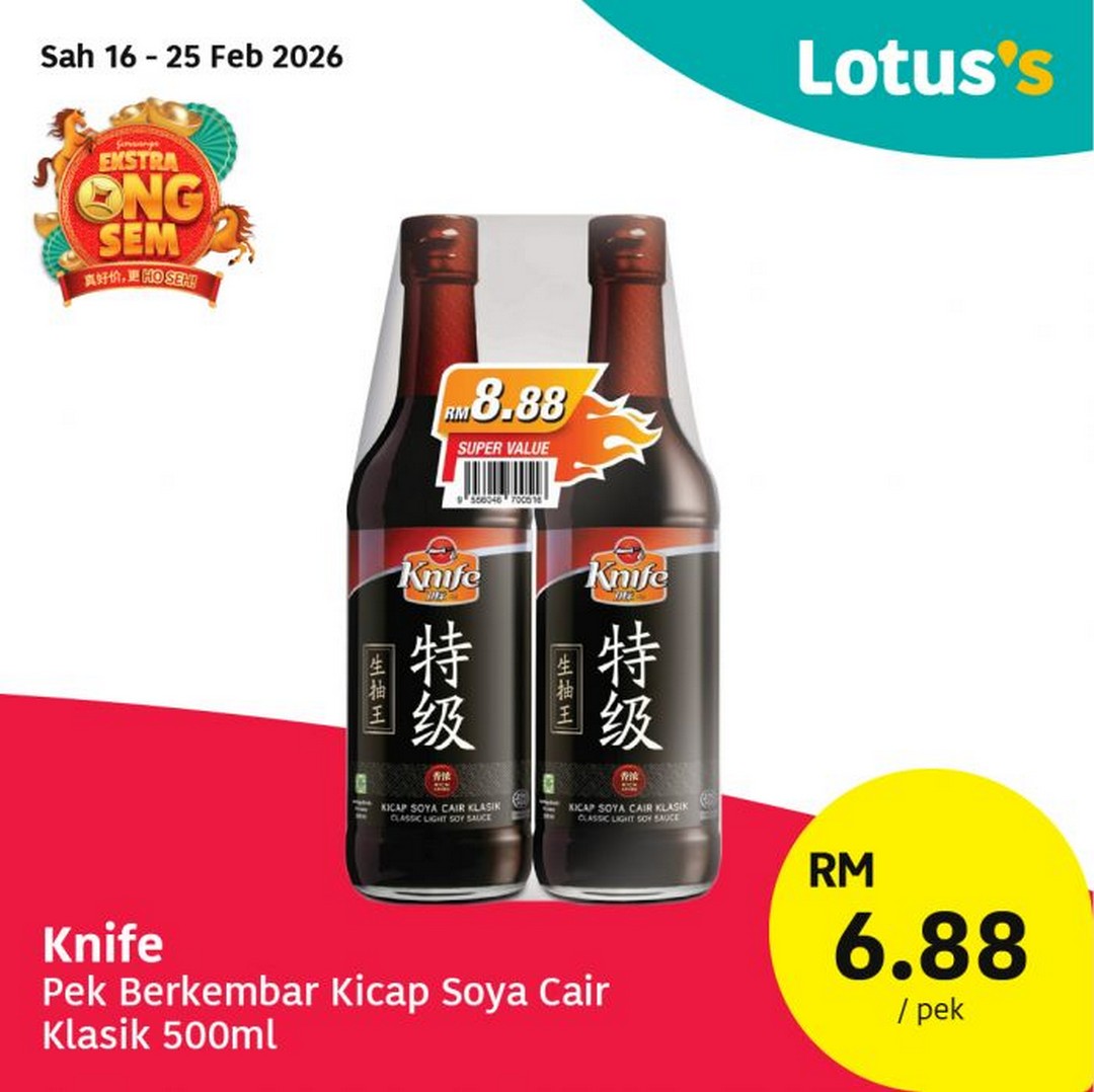Venue: Lotus’s Malaysia Outlets – Lee Kum Kee Kicap Soya Pekat Pilihan 500ml RM6.88, Knife Pek Berkembar Kicap Soya Cair Klasik 500ml RM6.88