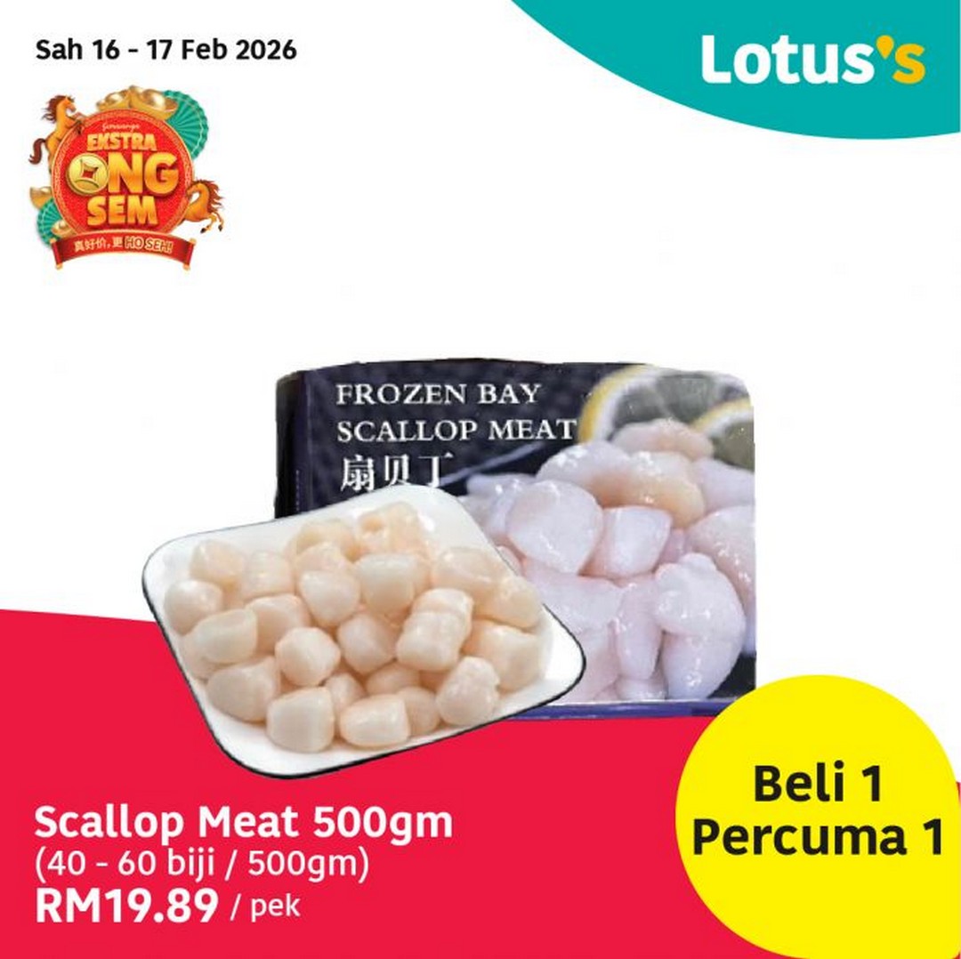 Venue: Lotus’s Malaysia Outlets – Buy 1 Free 1 Deals on Scallop Meat 500gm, White Shimeji Mushrooms 150gm, Green Dragon Vegetables 100gm -