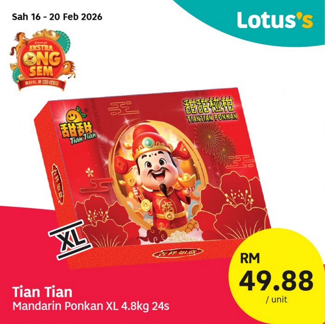 Venue: Lotus’s Malaysia Outlets – Tian Tian Mandarin Ponkan XL 4.8kg (24 pieces) RM49.88 -
