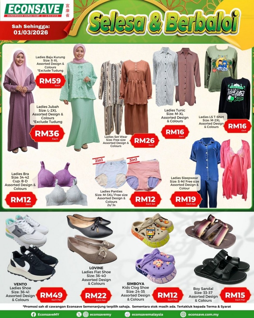 Timing is key for shoppers looking to make the most of these deals. With the promotion running until 1 March 2026, it’s recommended to plan visits early to avoid stock shortages, especially for popular sizes and styles. Econsave outlets across Peninsular Malaysia are stocked and ready to welcome shoppers looking to secure their festive outfits, innerwear essentials, and footwear.