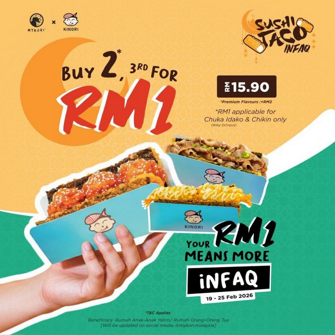 This February, food lovers in Malaysia have a heartwarming reason to satisfy their sushi cravings while contributing to a good cause. The beloved Mykori, in collaboration with Kinori, has launched the Sushi Taco Infaq campaign, a limited-time initiative that perfectly blends indulgence with generosity. Running from 19 to 25 February 2026, this promotion allows customers to enjoy their favourite sushi tacos while making a meaningful impact on the community.