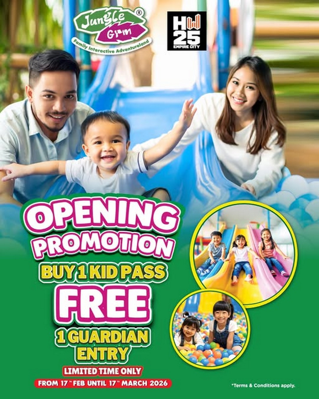In conclusion, Jungle Gym Hextar World Empire City’s opening promotion is a perfect blend of fun, bonding, and value. The Buy 1 Kid Pass, Get 1 Guardian Entry Free offer is an invitation to create unforgettable family memories in a safe, stimulating, and entertaining environment. With a wide range of activities designed to suit all ages, a conveniently located venue, and a limited-time promotion, there’s no better moment to experience the excitement. Don’t miss this opportunity to give your children an adventure they’ll remember and to enjoy precious moments of connection and laughter.