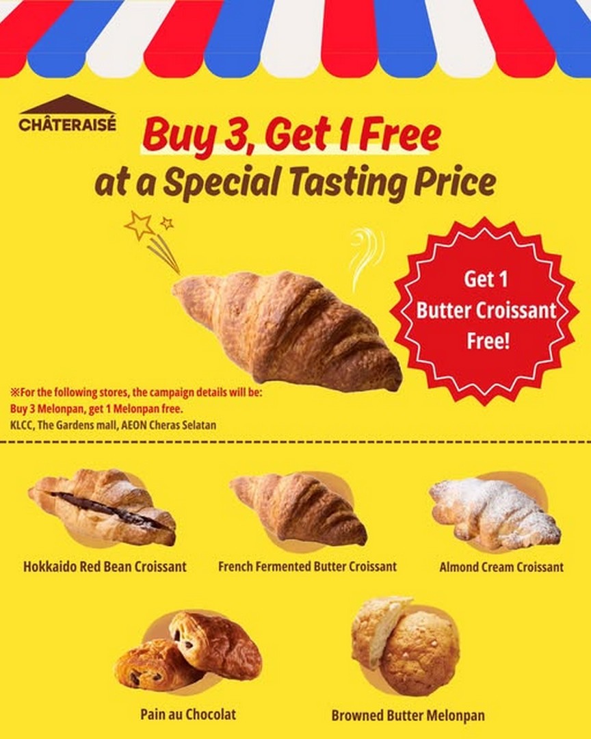 For anyone who finds comfort in freshly baked pastries and beautifully crafted Japanese-inspired desserts, this latest promotion by Châteraisé Malaysia is something that should not be missed. Starting from 23 February 2026 onward, they are offering around 20% OFF selected bakery items, and here is the sweet part: buy any three items and receive their hot-selling croissant absolutely FREE.
