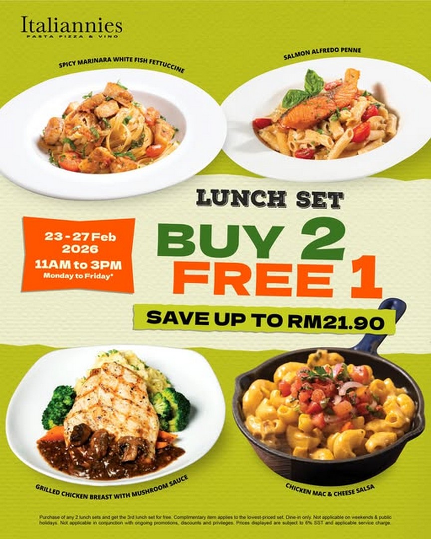 If there is one thing that never goes out of style, it is a comforting Italian lunch shared with good company. From freshly cooked pasta coated in rich sauces to tender grilled proteins served hot off the pan, Italian cuisine has always been a favourite choice for those who want something hearty yet satisfying. This February, Italiannies is giving Malaysians an even better reason to head out for lunch with their Buy 2 Free 1 Pranzo Luncho promotion, running from 23–27 February 2026, 11AM to 3PM, exclusively for dine-in.