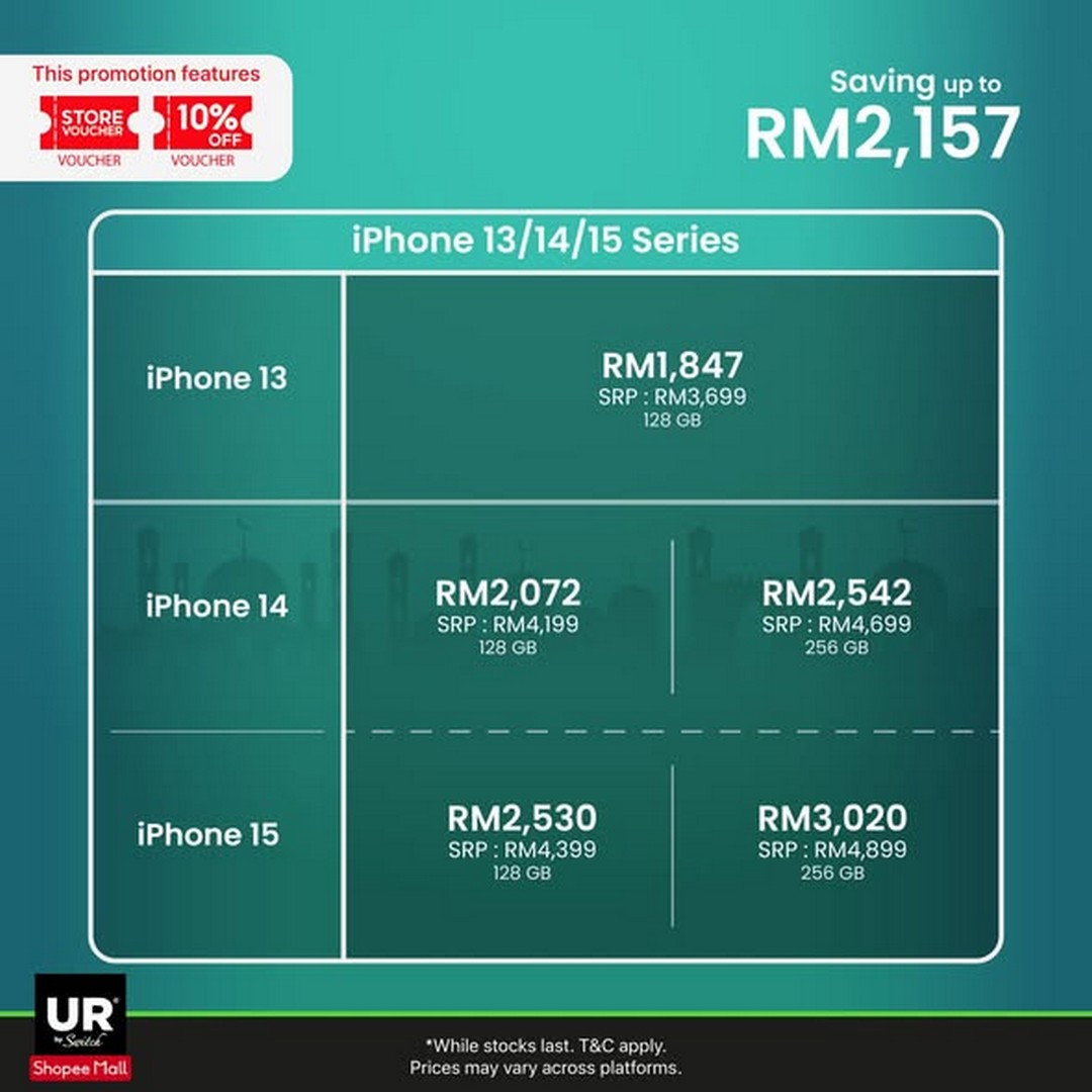 The promotion notes that instalment plans and promotional prices may vary by platform. This is important because many Malaysians now prefer spreading payments over several months, especially for higher-ticket items.