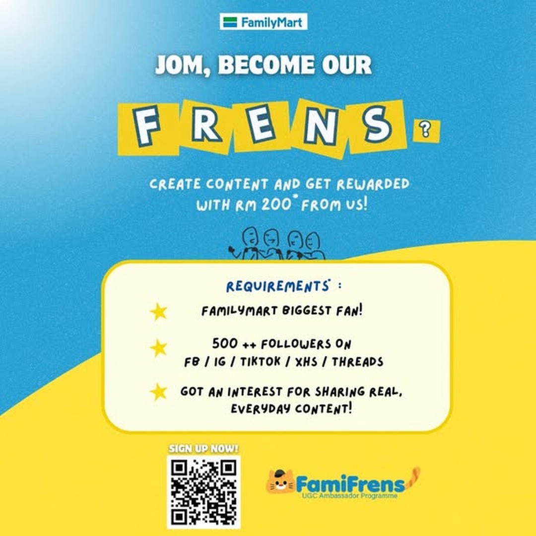 Joining the programme is simple and convenient. The first step is to register via the QR code provided or through this link: https://forms.gle/N3WwGKcwNPmqgQHJA. Registration is quick and ensures that participants enter the selection process to become one of FamilyMart’s chosen FamiFrens. Once registered, candidates need to monitor their inbox carefully. FamilyMart will send an email notification to those who are selected, confirming their status and providing guidance on the next steps.