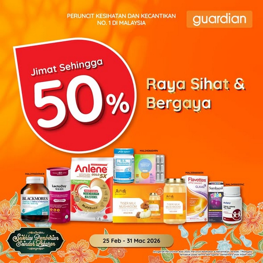 Raya is just around the corner, and it’s the perfect time to start preparing for a season of joy, family gatherings, and heartfelt celebrations. Guardian Malaysia is stepping up the festive cheer with a spectacular sale that promises to make this Syawal even more memorable. From 25 February to 31 March 2026, shoppers can enjoy savings of up to 50% on a wide range of daily essentials. Whether it’s beauty products, personal care items, or health essentials, there’s something for everyone to indulge in while saving some ringgit along the way.