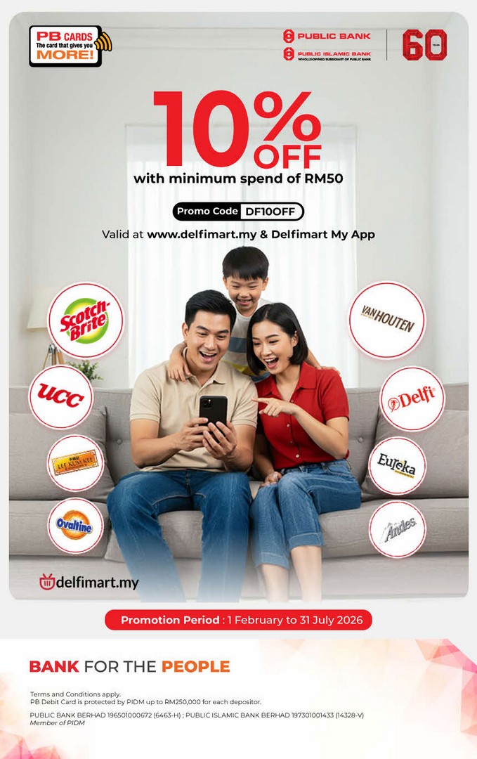 If you are a savvy shopper looking for ways to stretch your ringgit while ticking off your online shopping list, Delfimart has a deal you’ll want to check out. From 1 February to 31 July 2026, PB Cardmembers can enjoy 10% off on purchases of RM50 and above at Delfimart, Malaysia’s trusted online grocery and household essentials platform. This offer is part of the PB Privileges programme, which rewards Public Bank (PB) and Public Islamic Bank (PIB) cardholders, as well as employees of the Public Bank Group and their immediate families.