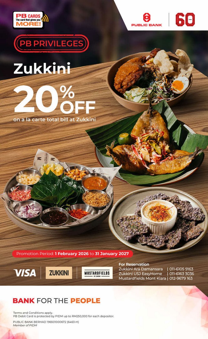 For those who appreciate a fine dining experience or simply love savouring freshly prepared meals, Zukkini and Mustardfields By Zukkini have some exciting news for all Public Bank (PB) Visa Cardmembers. From 1 February 2026 until 31 January 2027, PB cardholders can enjoy an exclusive 20% off their total a la carte bill at all Zukkini outlets across Malaysia. This is a promotion that’s perfect for family gatherings, catching up with friends, or even a treat-yourself lunch or dinner.