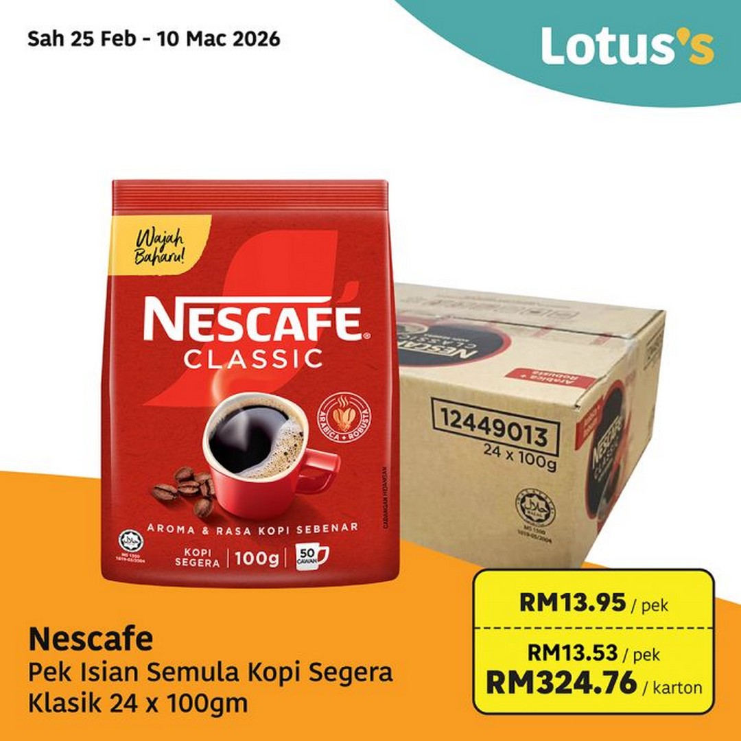 For noodle enthusiasts, Indomie Mi Goreng (Original/Special) 8 x 5 x 80g is priced at RM35.70 per carton – perfect for those who enjoy quick and affordable meals. Coffee lovers can also take advantage of the Nescafe Classic Refill Pack, priced at RM13.95 per pack, or opt for a full carton at RM324.76, effectively reducing the per-pack cost to RM13.53.