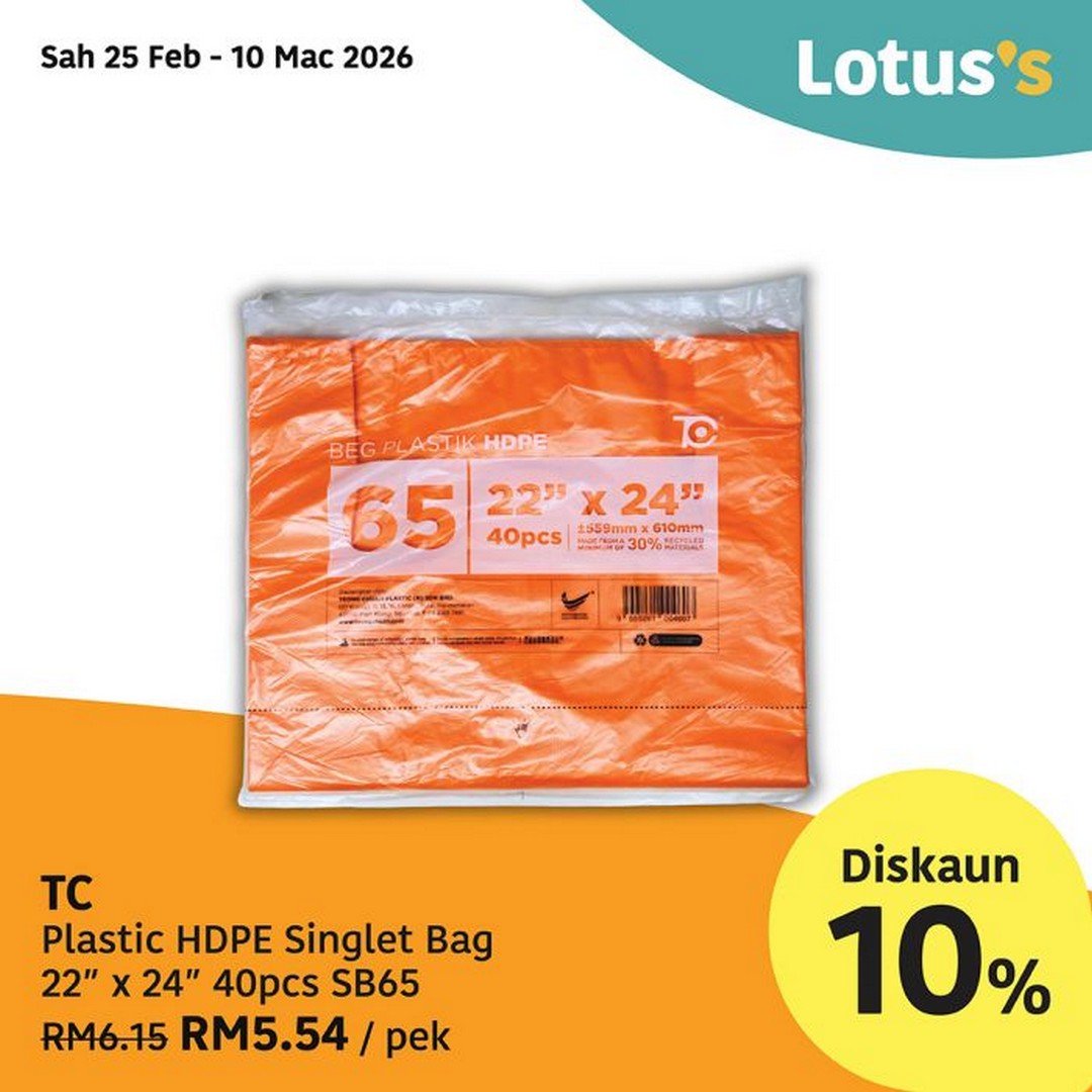 Lotus’s doesn’t just cater to food needs. Businesses and households alike can enjoy discounts on essential supplies that ensure daily operations run smoothly. During the promotion period, items like Labour Dishwashing Liquid (12 x 900ml) are available at RM34.55 per carton, while TC Plastic HDPE Singlet Bags (22” x 24”, 40pcs) are offered at a 10% discount, making each pack RM5.54 instead of the usual RM6.15. Similarly, ABBAware Rectangular Containers with Lid (50pcs) are 10% off at RM18.78 per pack, down from RM20.90. These deals are particularly useful for businesses managing high turnover or households preparing meals in bulk.