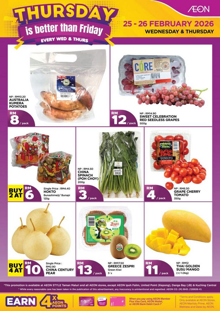 A balanced meal is not complete without vegetables and fruits, and AEON’s Thursday promotion covers these essentials too.